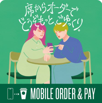 モバイルオーダーはお席からもご利用いただけます。席からオーダーでどうぞ、ごゆっくり。